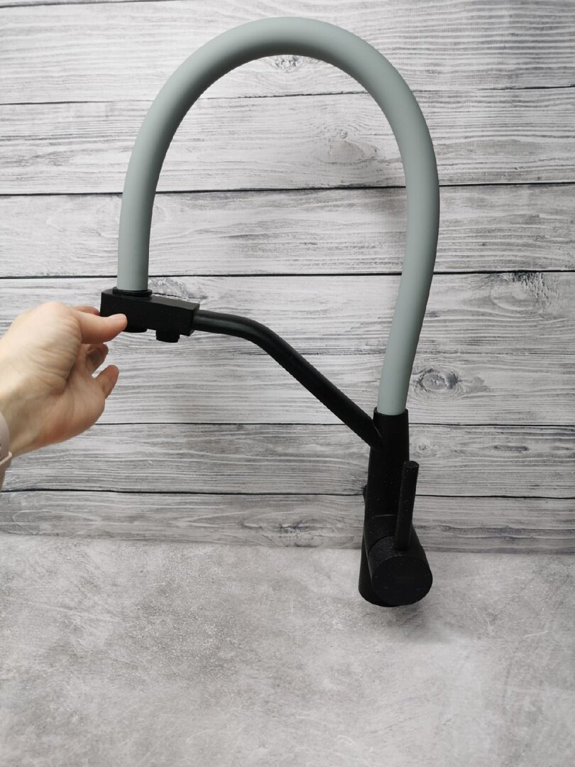 СохранитьСмеситель (кран) для кухни с фильтром для питьевой воды, для раковины на кухню с гибким изливом, Trigor NZL11-MD-KG-808 черный корпус, серый излив интересное: