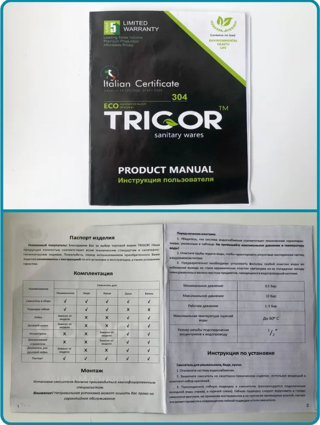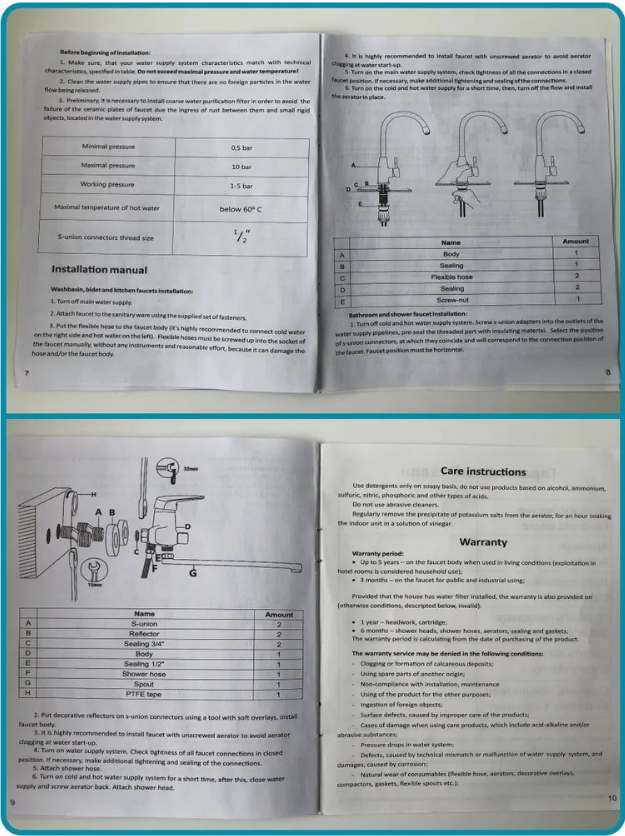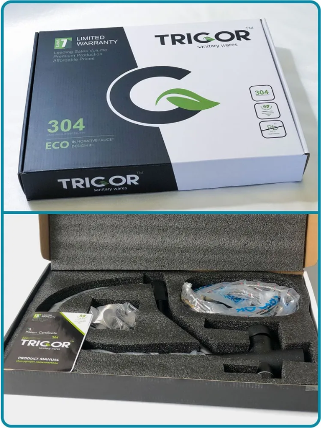| Комплектация | Смеситель для кухни - 1 шт. Резиновое уплотнительное кольцо - 1 шт. Монтажная трубка полая - 1 шт. Резиновая прокладка - 1 шт. Металлическая затяжная гайка - 1 шт. Гибкая подводка 50 см под холодную и горячую воду - 2 шт. Гибкая подводка 50 см под фильтрованную воду - 1 шт. Переходник пластиковый под фильтр - 1 шт. Гарантийный талон и инструкция по эксплуатации - 1 шт. |