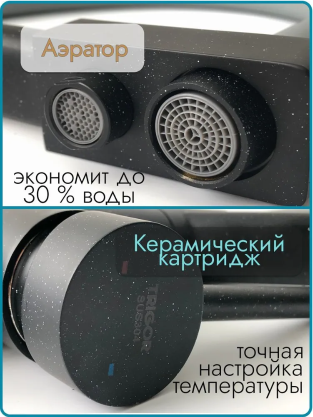| Особенности | аэратор / встроенный фильтр / система быстрого монтажа |