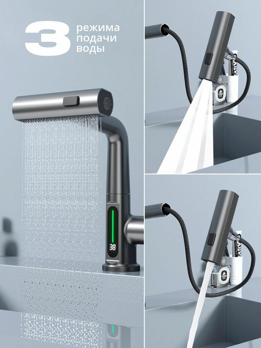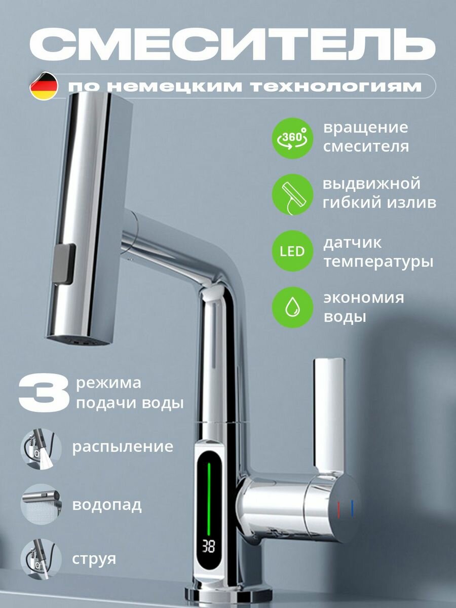 Смеситель для раковины с датчиком температуры и подсветкой, хром интересное: