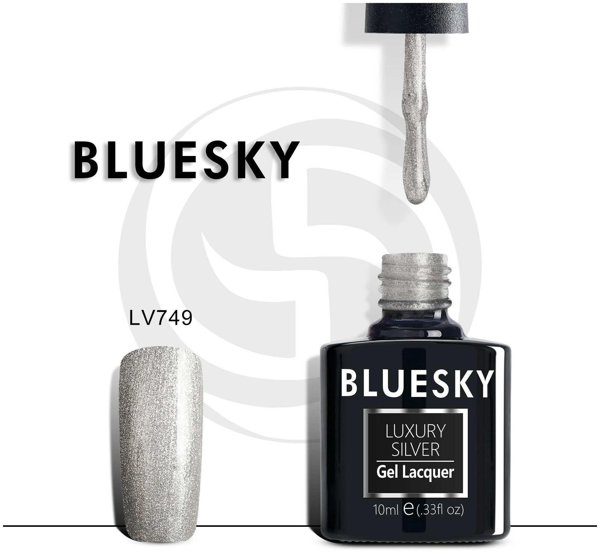 Купить BLUESKY Luxury Silver Гель-лак 10мл LV749 (на прозрачной подложке, с серебристыми микроблестками и перламутром, плотный.)
