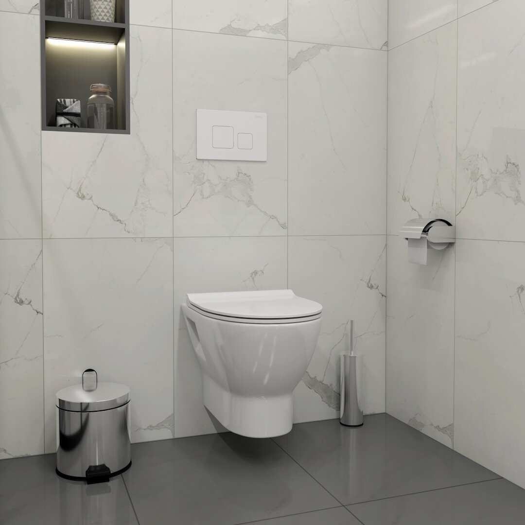 Инсталляция с унитазом комплект 5 в 1 Teymi унитаз подвесной безободковый Ritta кнопка белая / хром F13383