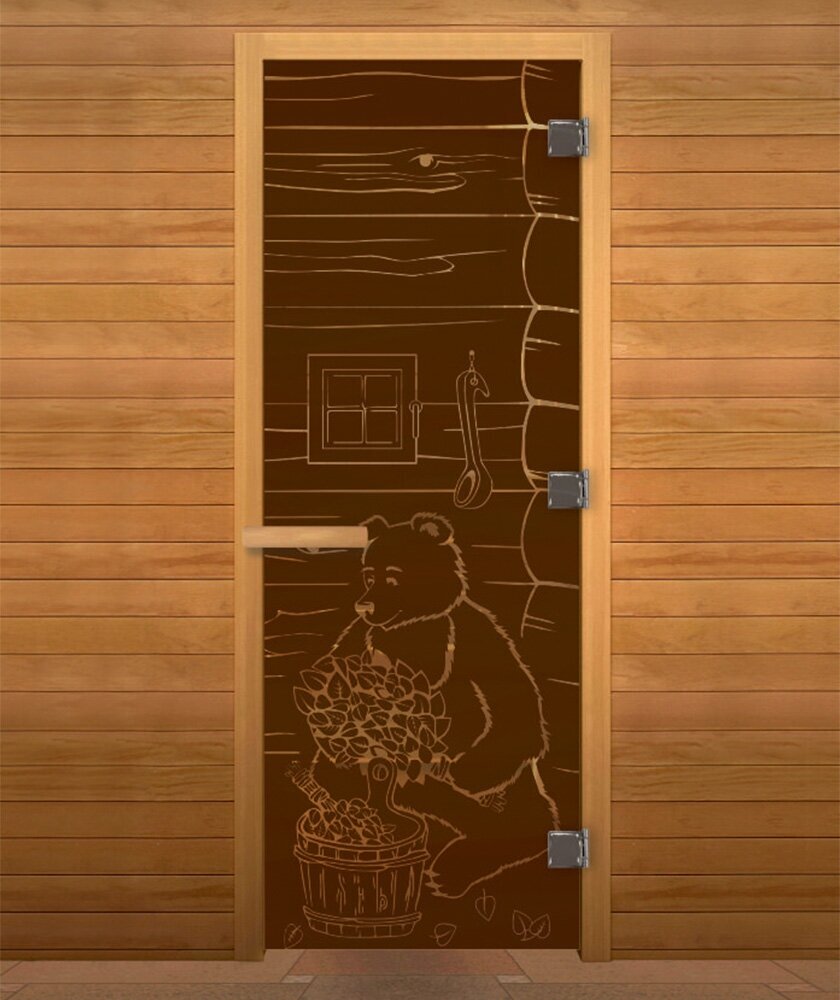 Дверь стеклянная Бронза Матовая "мишка" 1900х700мм (8мм, 3 петли 710 CR хром, коробка осина, открывание правое) интересное: