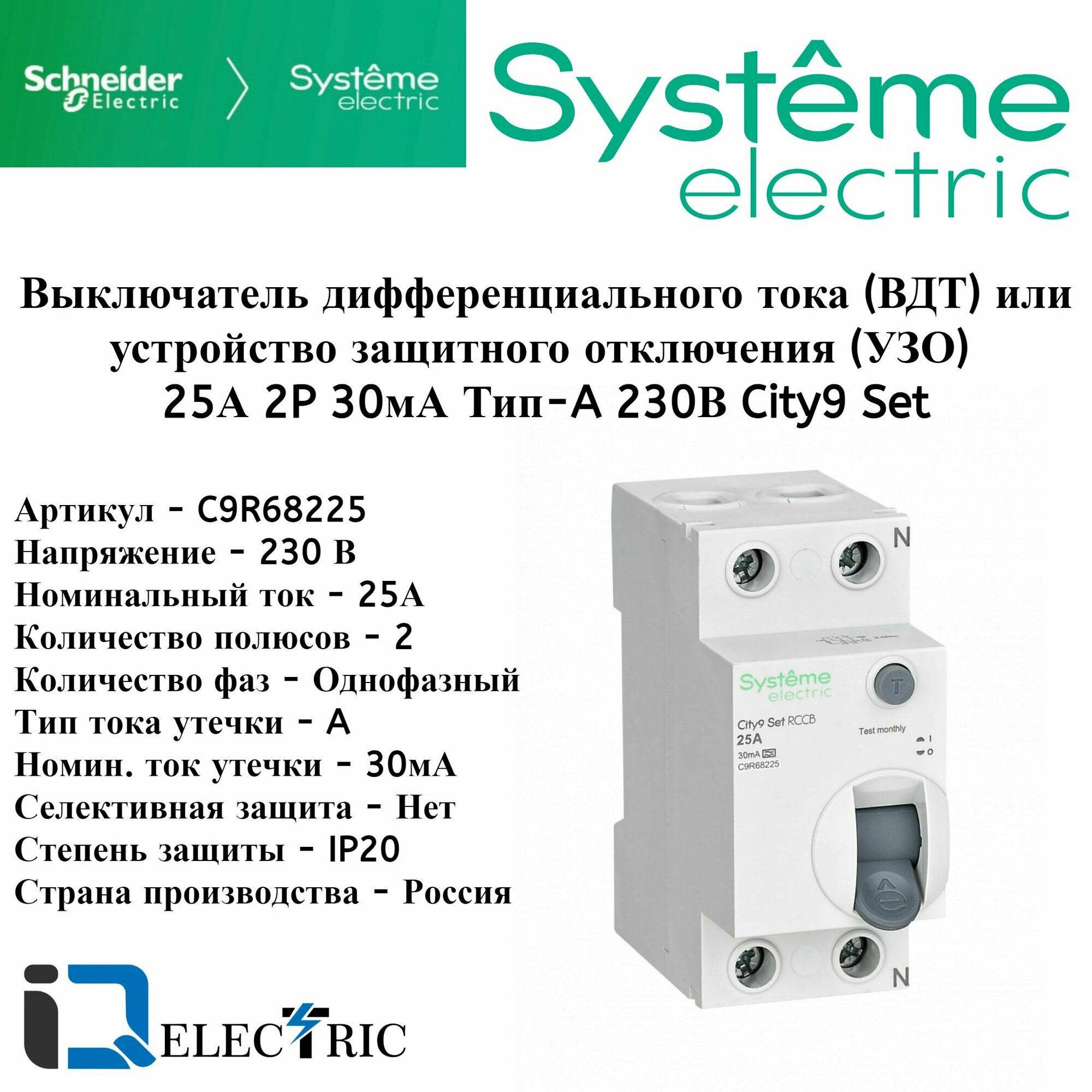 Устройство защитного отключения (УЗО) 25А 2P 30мА Тип-A 230В City9 Set Systeme Electric C9R68225 интересное: