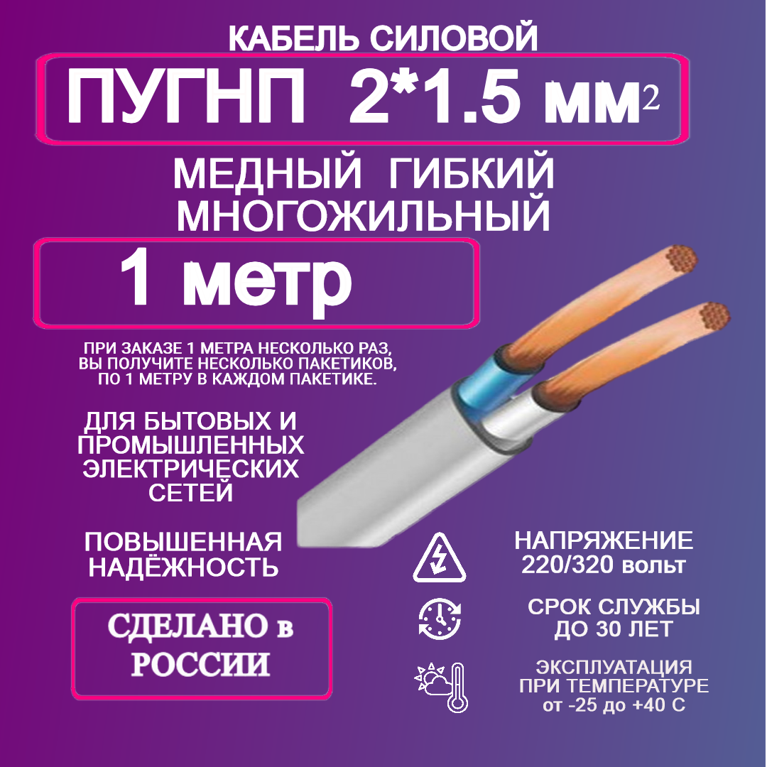 СохранитьСиловой кабель ПУГНП 2*1,5 1 метр интересное: