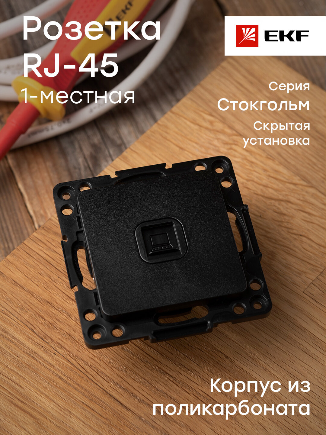Розетка EKF Стокгольм RJ-45 1-местная черный