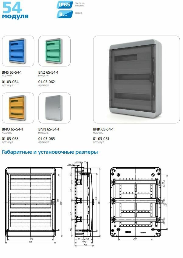 Бокс навесной Tekfor BNZ 65-54-1 54 модуля, зелёная прозрачная дверь интересное: