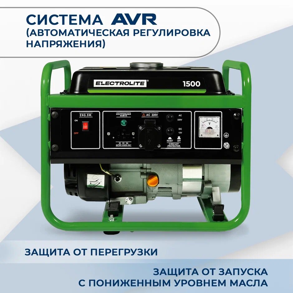 Купить Генератор бензиновый Электрический / бензогенератор Electrolite 1500 (1 фаза, 4-х тактный двигатель, 1.875 кВа максимальная нагрузка , 220 В / 12 В, 1 / 1.2 кВт, 50 Гц, ручной стартер )