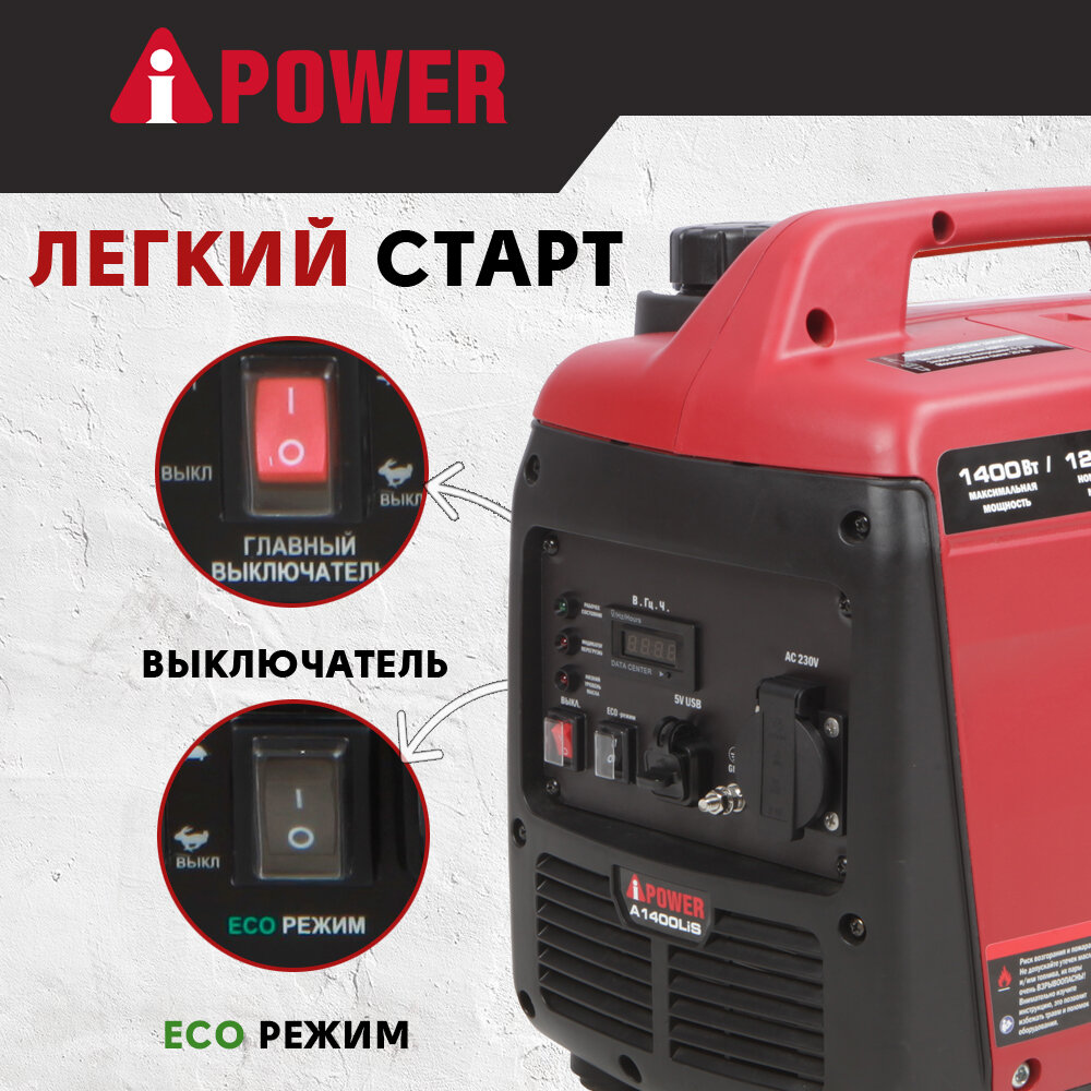 Инверторный бензиновый генератор A-iPower A1400LiS(1,4 кВт) интересное: