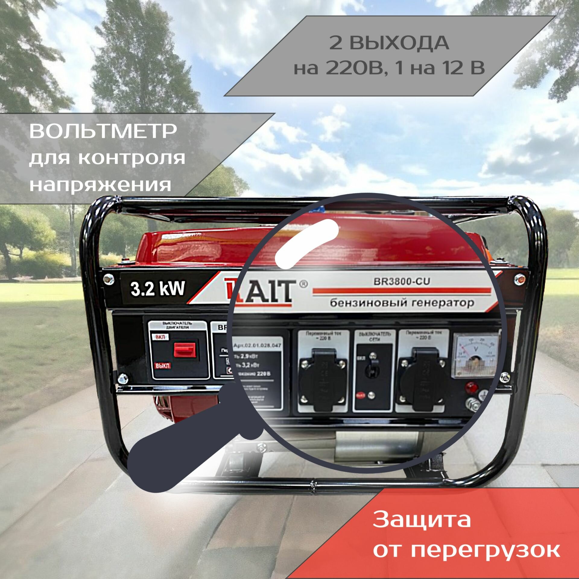 Генератор бензиновый BRAIT BR3800-CU / бензогенератор 3,2 кВт / генератор для рыбалки, туризма, с медной обмоткой + масло 4 т в наборе интересное: