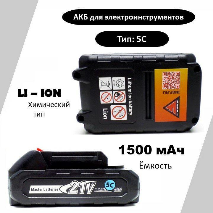 Аккумулятор INGF, для инструмента, Li-Ion, 18В, 1,5Ач, 5с, слайдерная конструкция