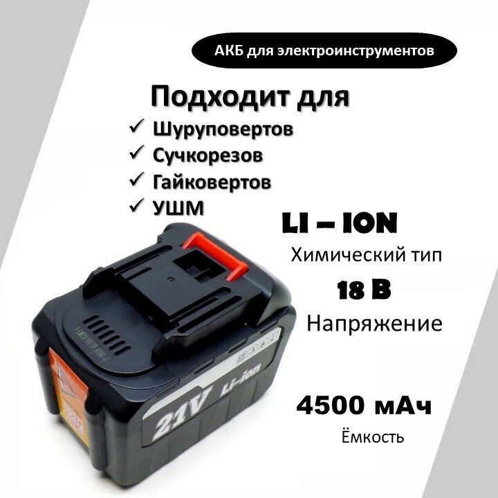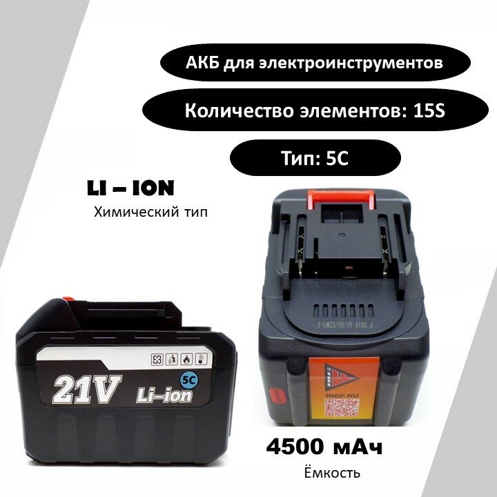Аккумуляторная батарея INGF, Li-Ion, 18B, 4.5Aч, для электроинструмента