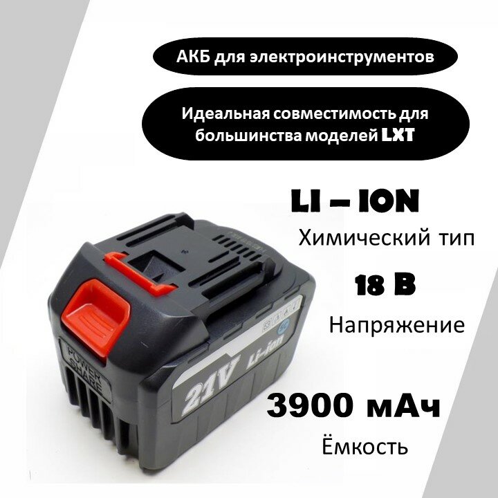 Аккумулятор INGF 18V lxt, Li-Ion, 3.9 Ач, для электроинструмента, слайдер, черный