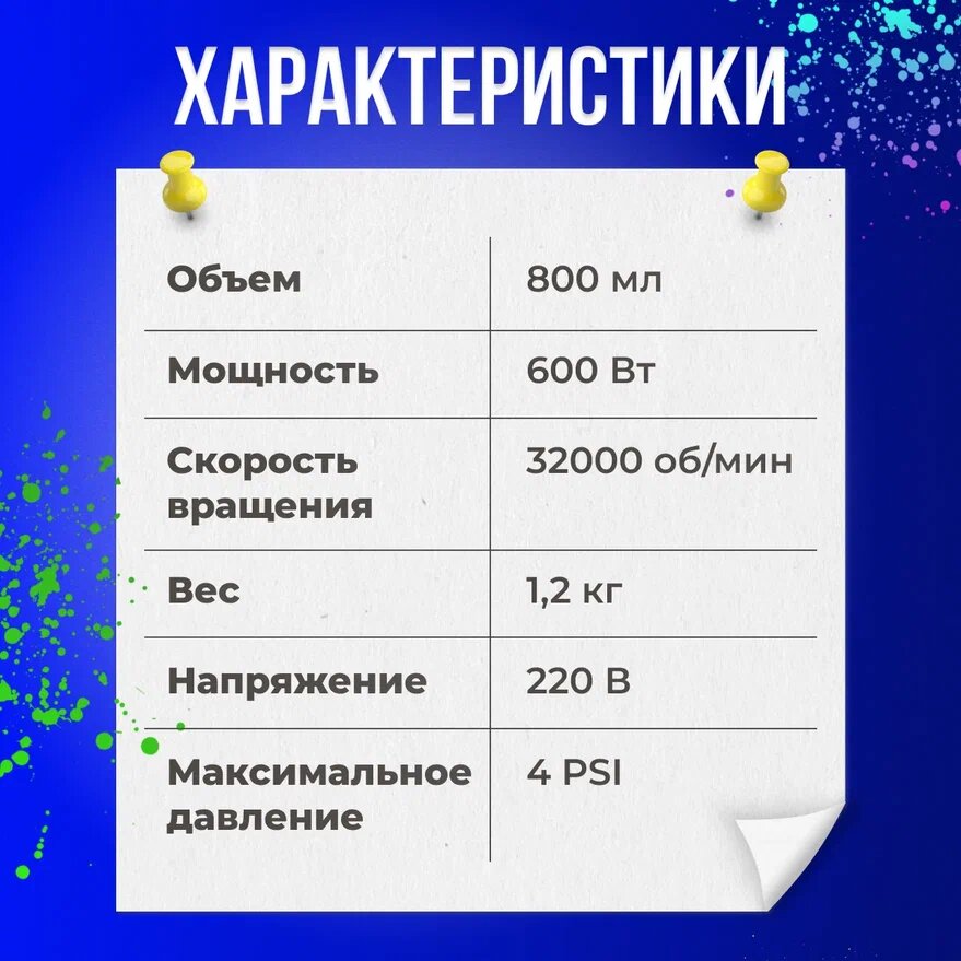 | Особенности | регулировка диаметра сопла, регулировка подачи материала |