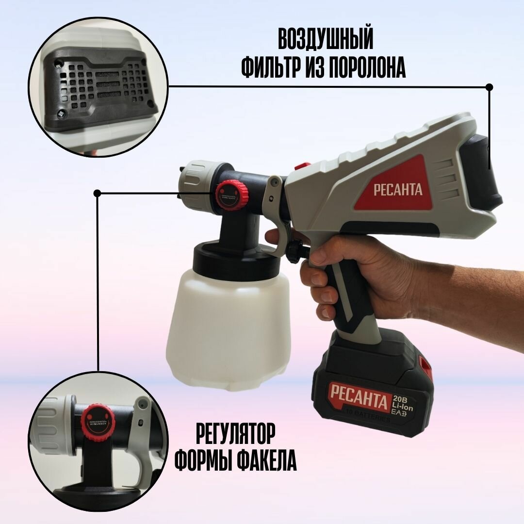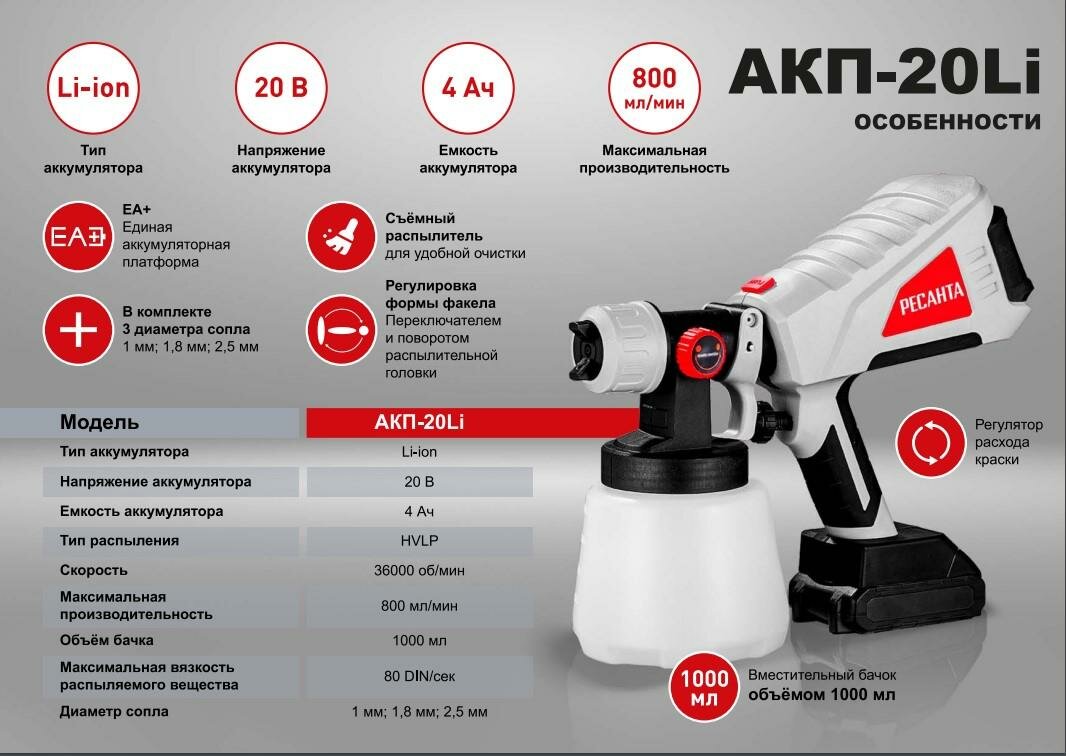 Краскопульт аккумуляторный Ресанта АКП-20Li (1АКБ+ЗУ) (75/17/3) интересное: