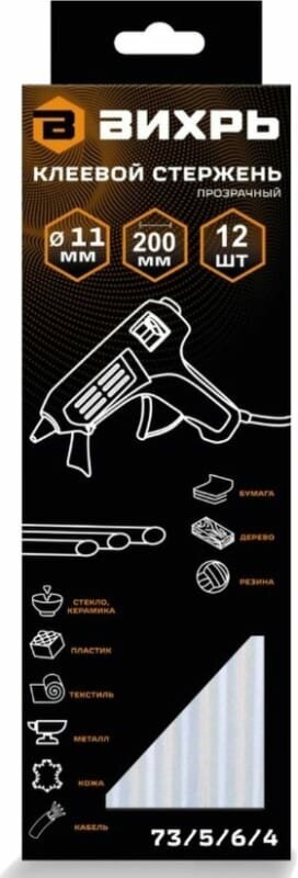 Клеевой стержень Вихрь 11х200мм, 12шт, 73/5/6/4