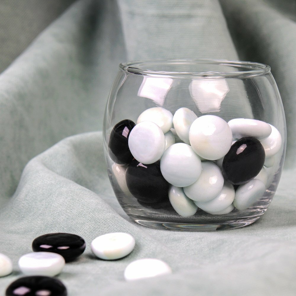 Купить Декоративные камни "Черно-белые" 200 грамм из стекла, для украшения аквариума, цветочных горшков