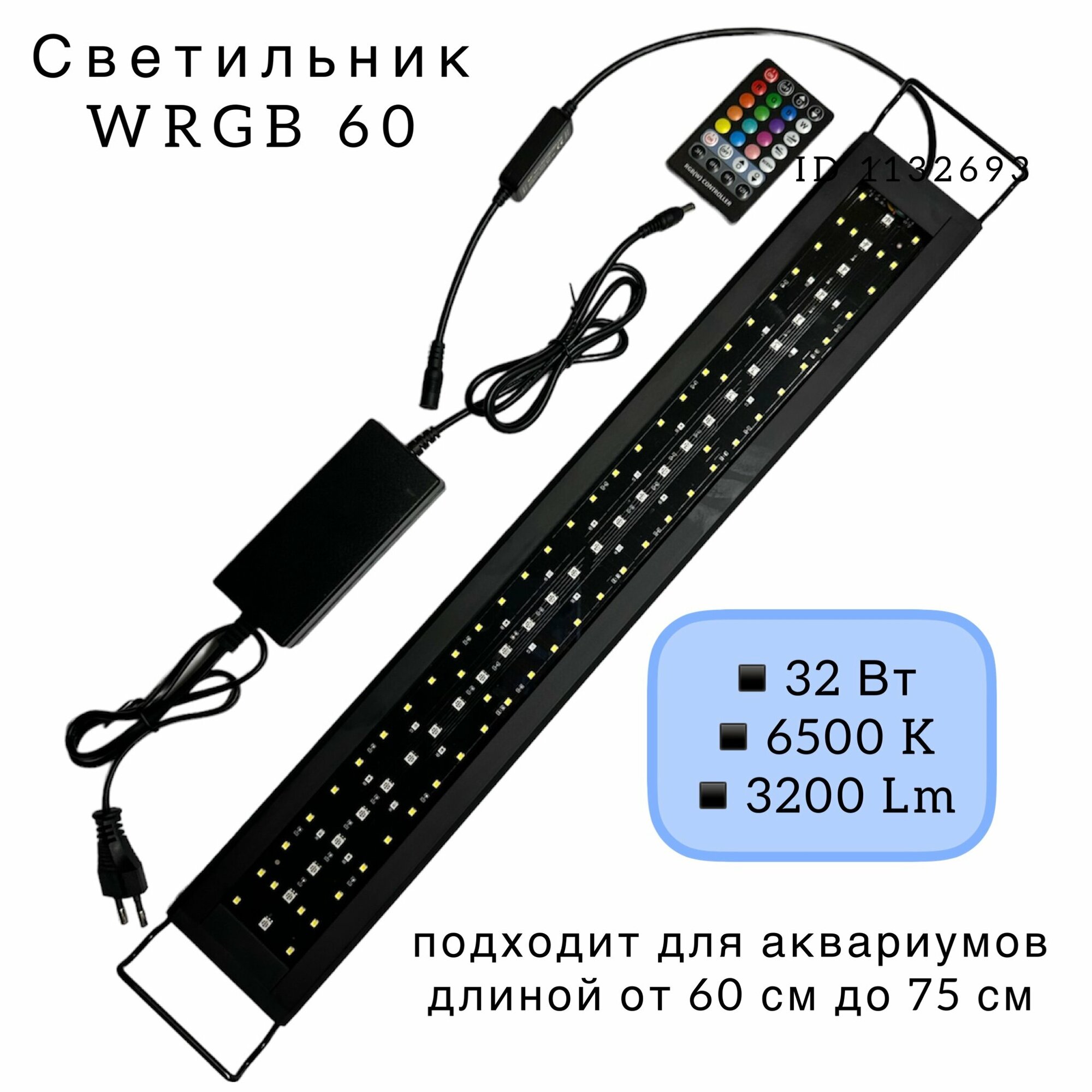 WRGB 60 LED + пульт ДУ (⇄ 60-75 см) светильник светодиодный для аквариума интересное: