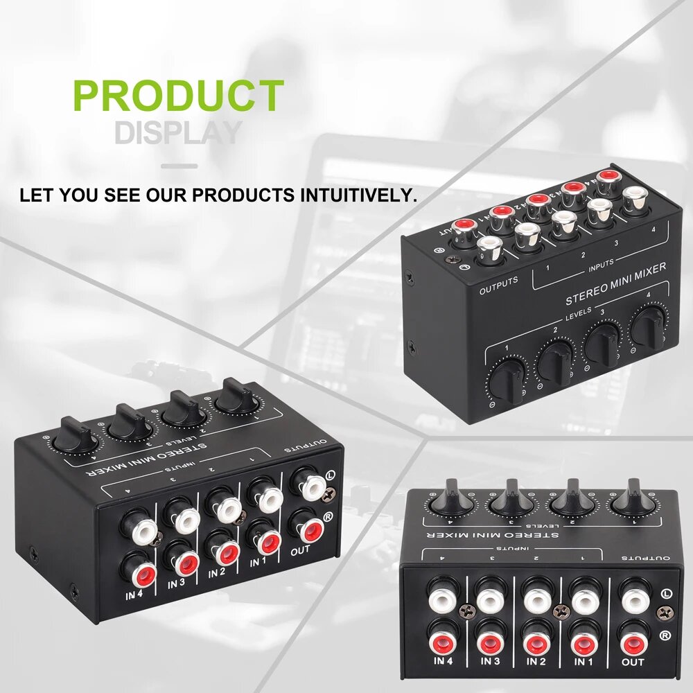 | Особенности | 4-Channel Passive Mixer / Mini passive stereo mixer / Sound Mixer / Stereo audio Mixers / mini stereo four-channel passive mixer |
