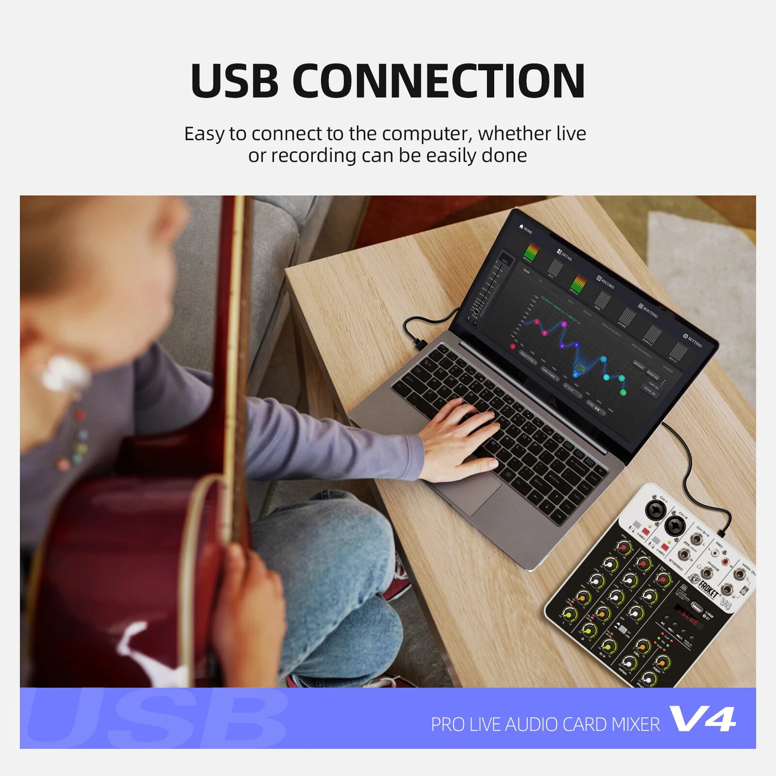 JIY Professional 4-канальный микшерный пульт Мини-USB-микшер со звуковой картой
