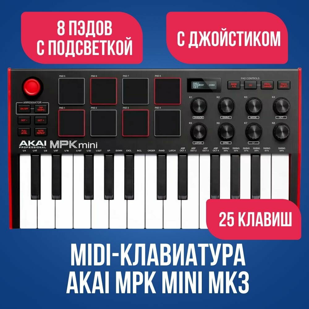 Мииди клавиатура USB MIDI-клавиатура AKAI MPK Mini MK3 интересное: