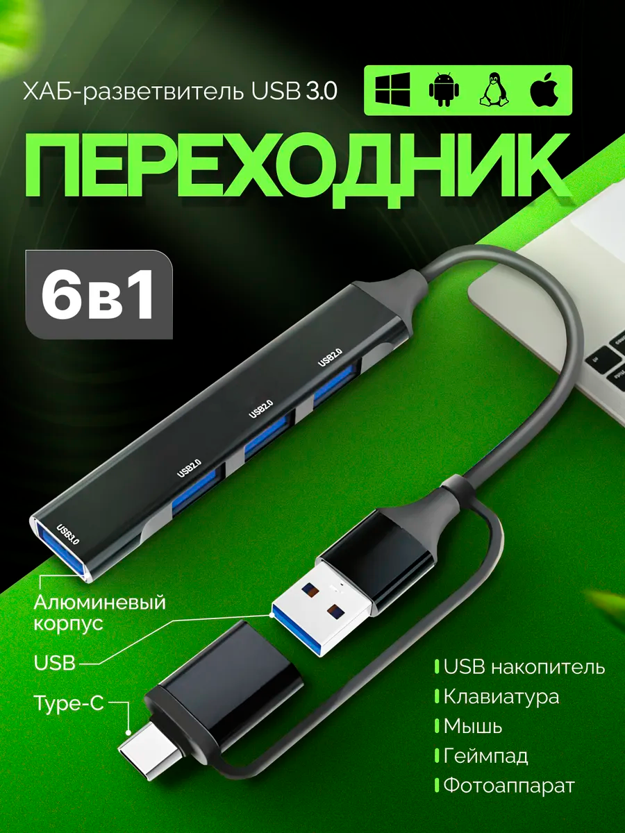 Купить USB-концентратор/USB-Hub/USB 3.0/Type-c/OTG-адаптер/FHY08