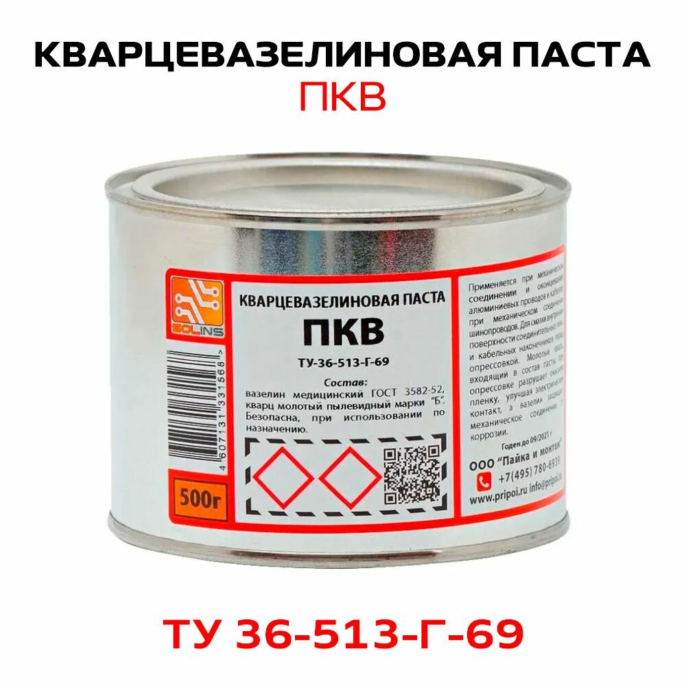 Паста кварцевазелиновая Solins ПКВ защитная для опрессовки жил, соединения проводов и кабелей, смазка для гильзы соединительной, вазелин, кварц молотый, защита от коррозии и окисления, 500 г интересное: