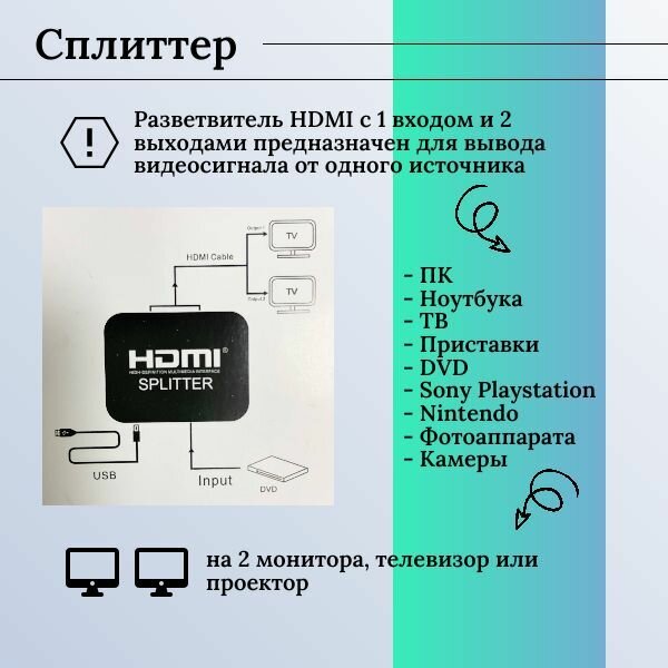 HDMI разветвитель с 1 на 2 1*2 дублирующий интересное: