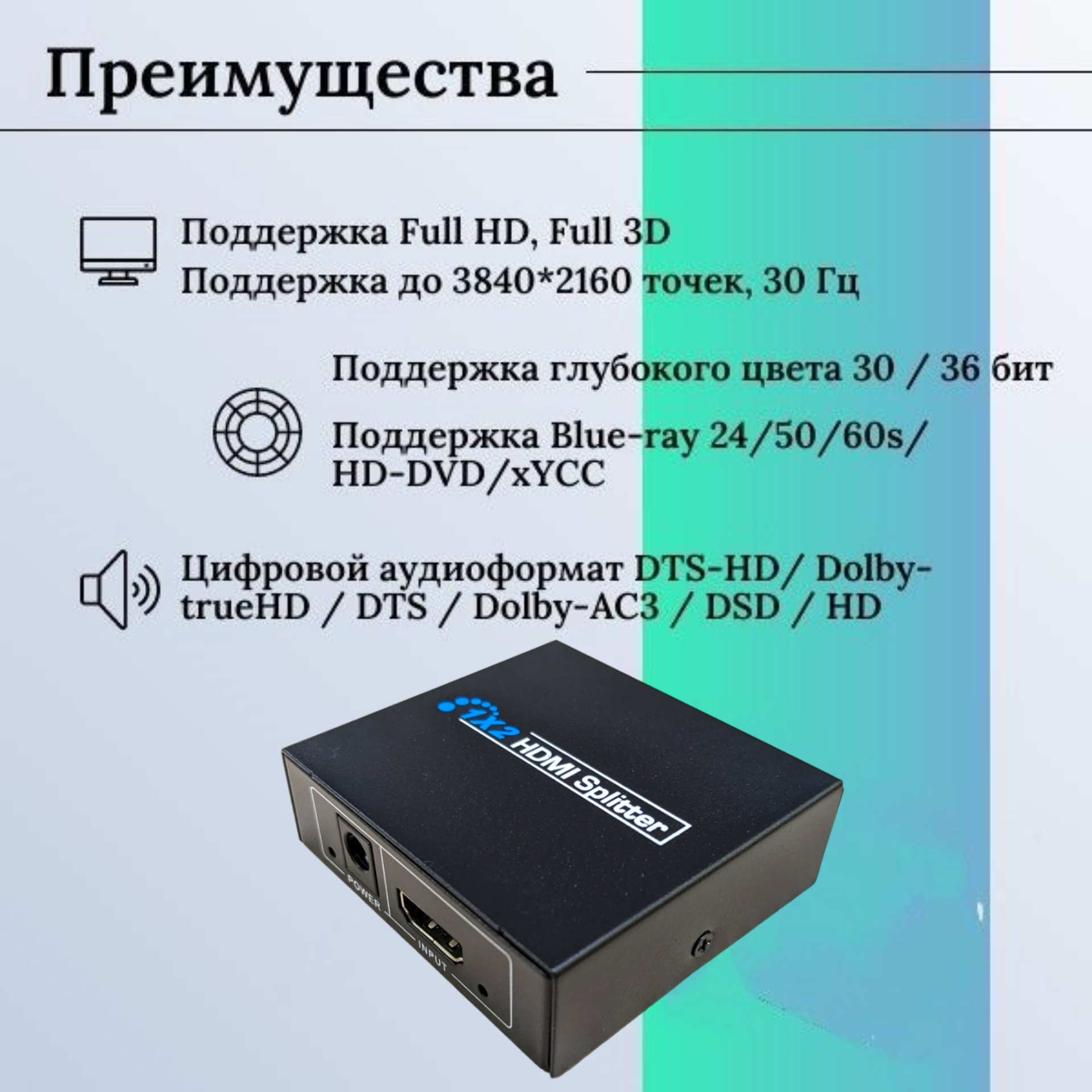 HDMI разветвитель с одного на 2 экрана на 2 монитора 1 вход HDMI - 2 выхода HDMI с обходом HDCP металлический интересное: