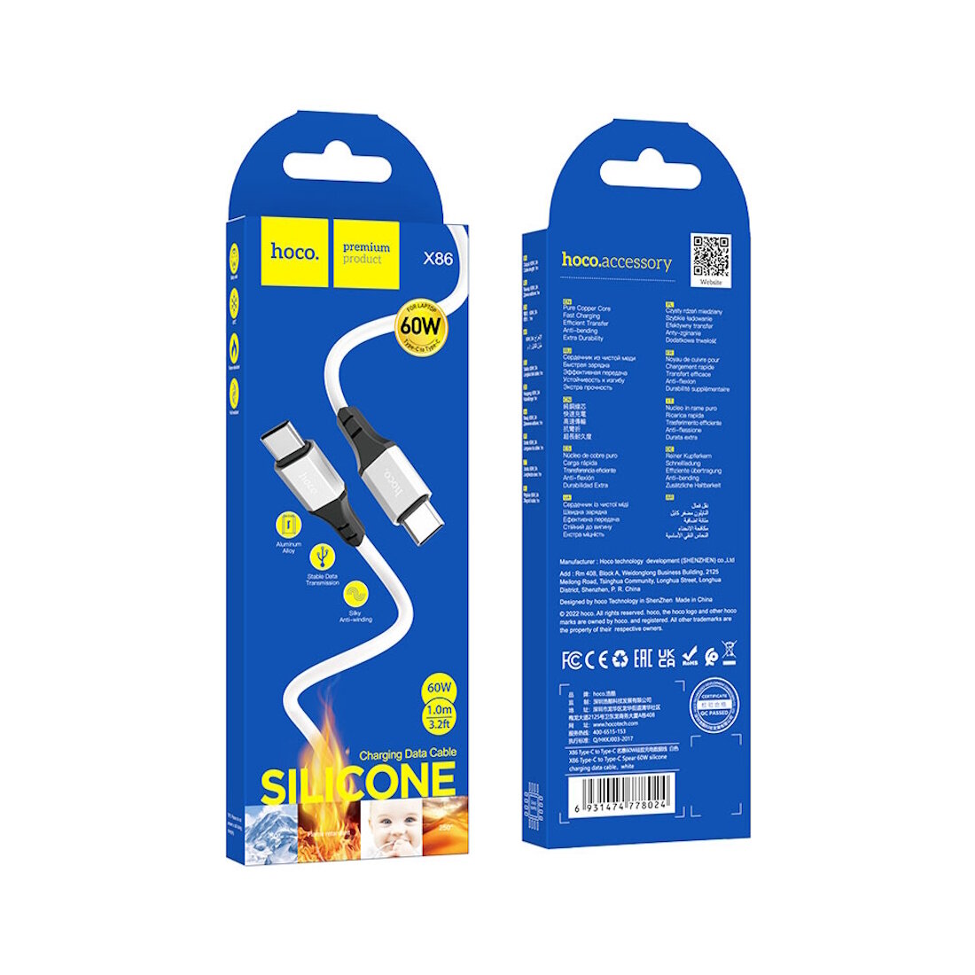 Купить Кабель Hoco X86 Silicon Premium, быстрая зарядка, Type-C to Type-C Hoco X86 60W, белый