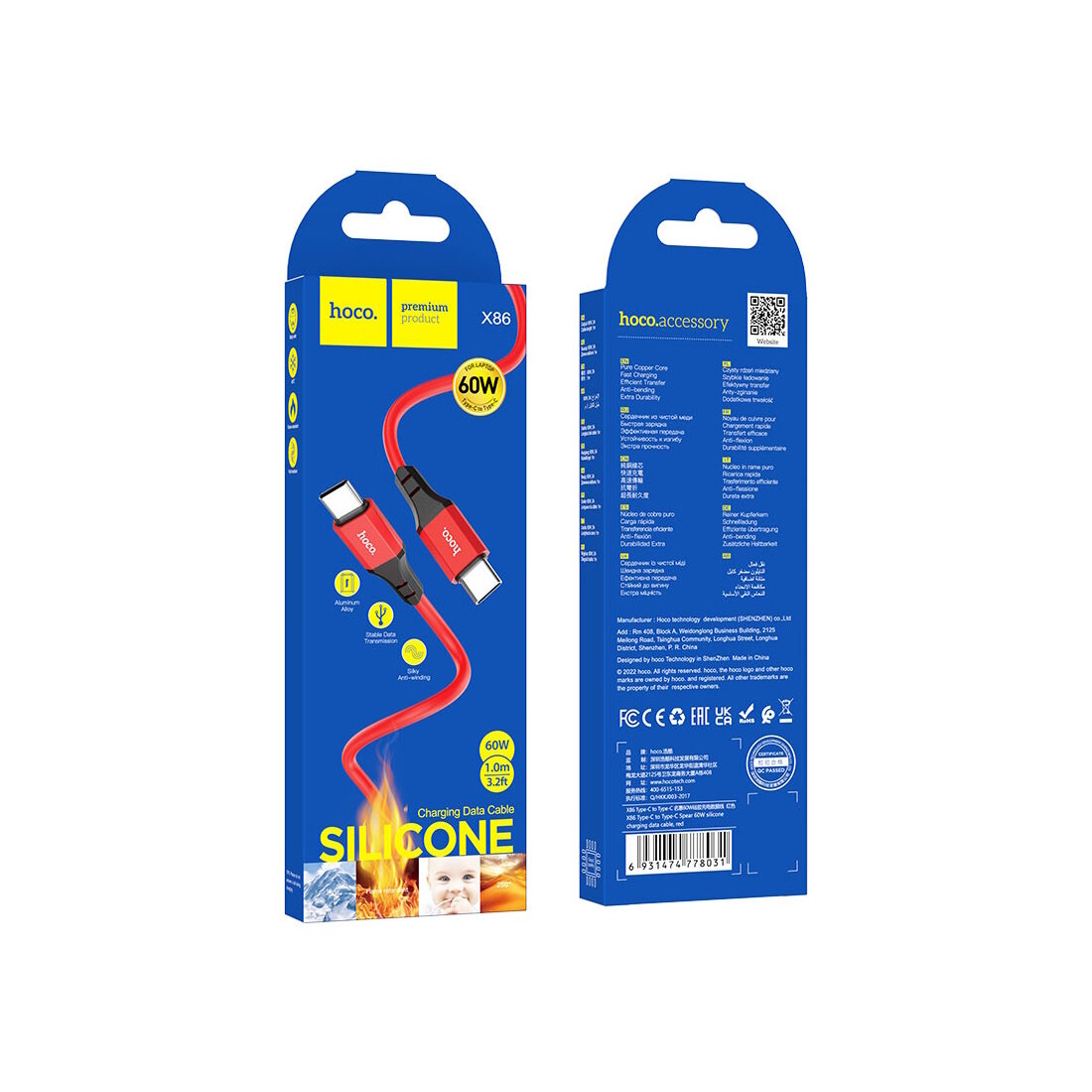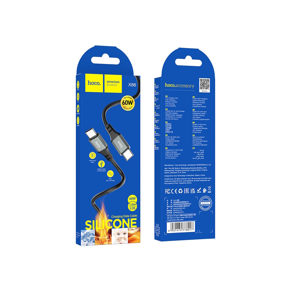 Кабель Hoco X86 Silicon Premium, быстрая зарядка, Type-C to Type-C Hoco X86 60W, чёрный