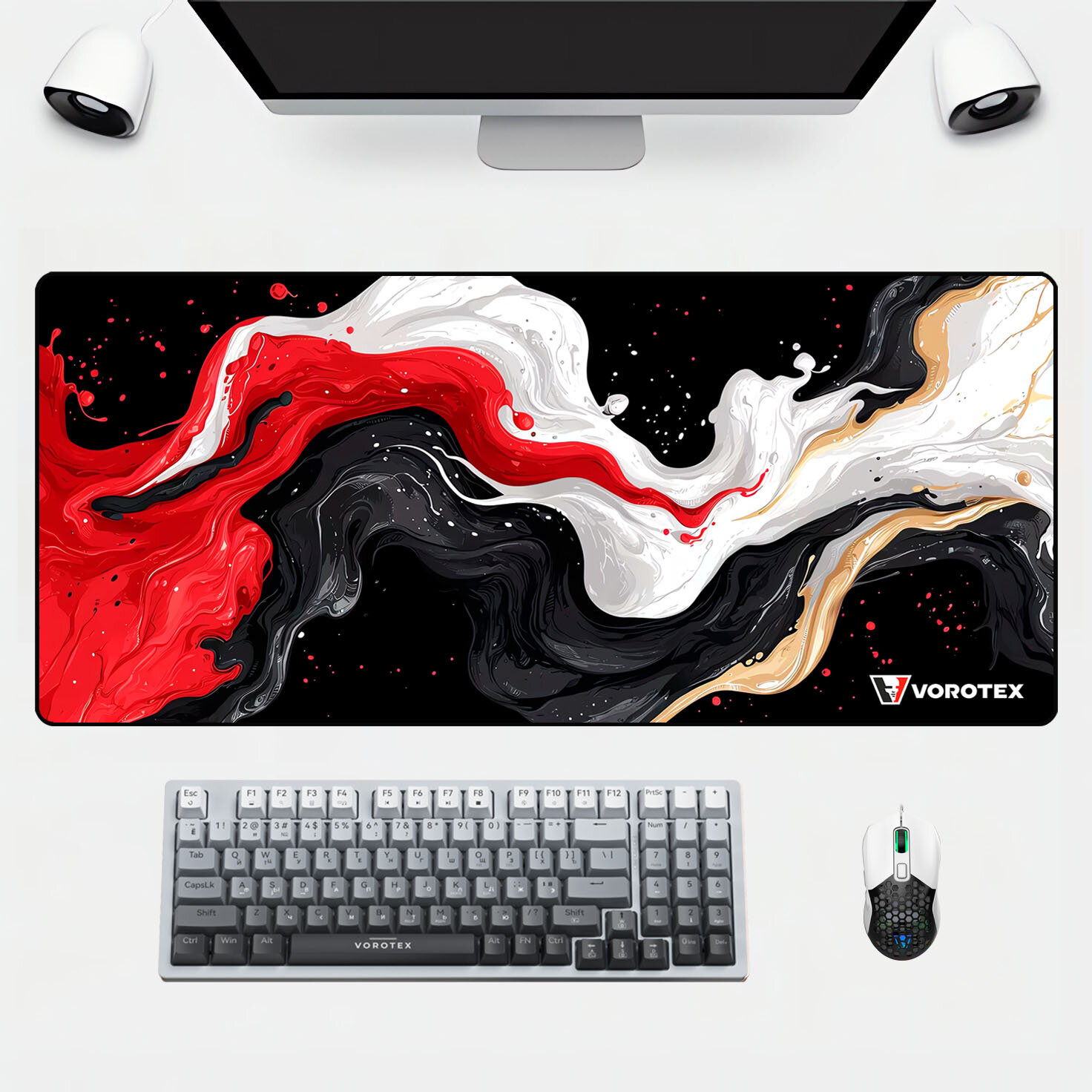 Купить Игровой коврик VOROTEX XXL, 90х40 см, 4 мм, черный/белый/красный