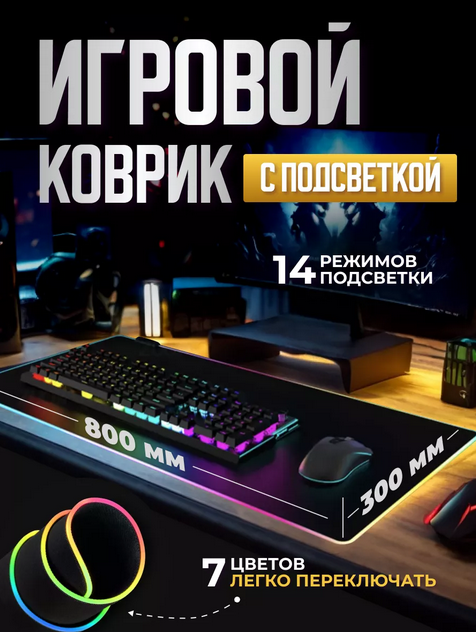 Игровой коврик для мыши с подсветкой RGB, большой нескользящий коврик для мыши 800х300 интересное: