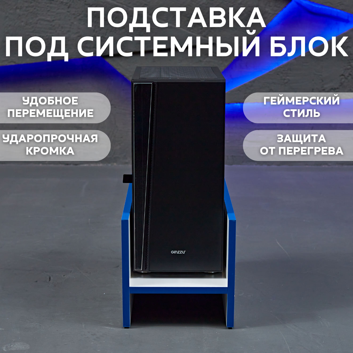 Подставка под системный блок бело-синяя игровой геймерский стол 50Х25Х8,5 интересное: