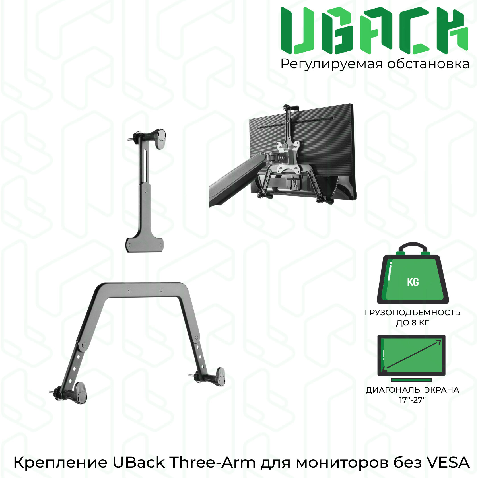 Адаптер-крепление UBack Three-Arm для мониторов без крепления VESA 17"-27" до 8 кг, черный интересное: