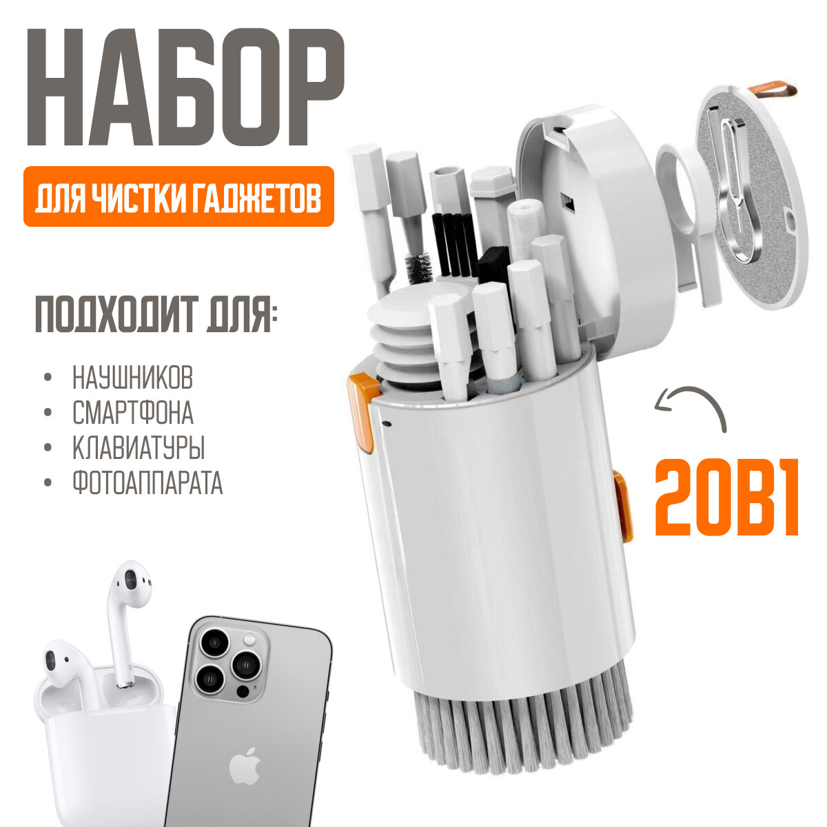 Купить Набор для чистки гаджетов 20 в 1 для клавиатуры, наушников, смартфонов, фотоаппаратов