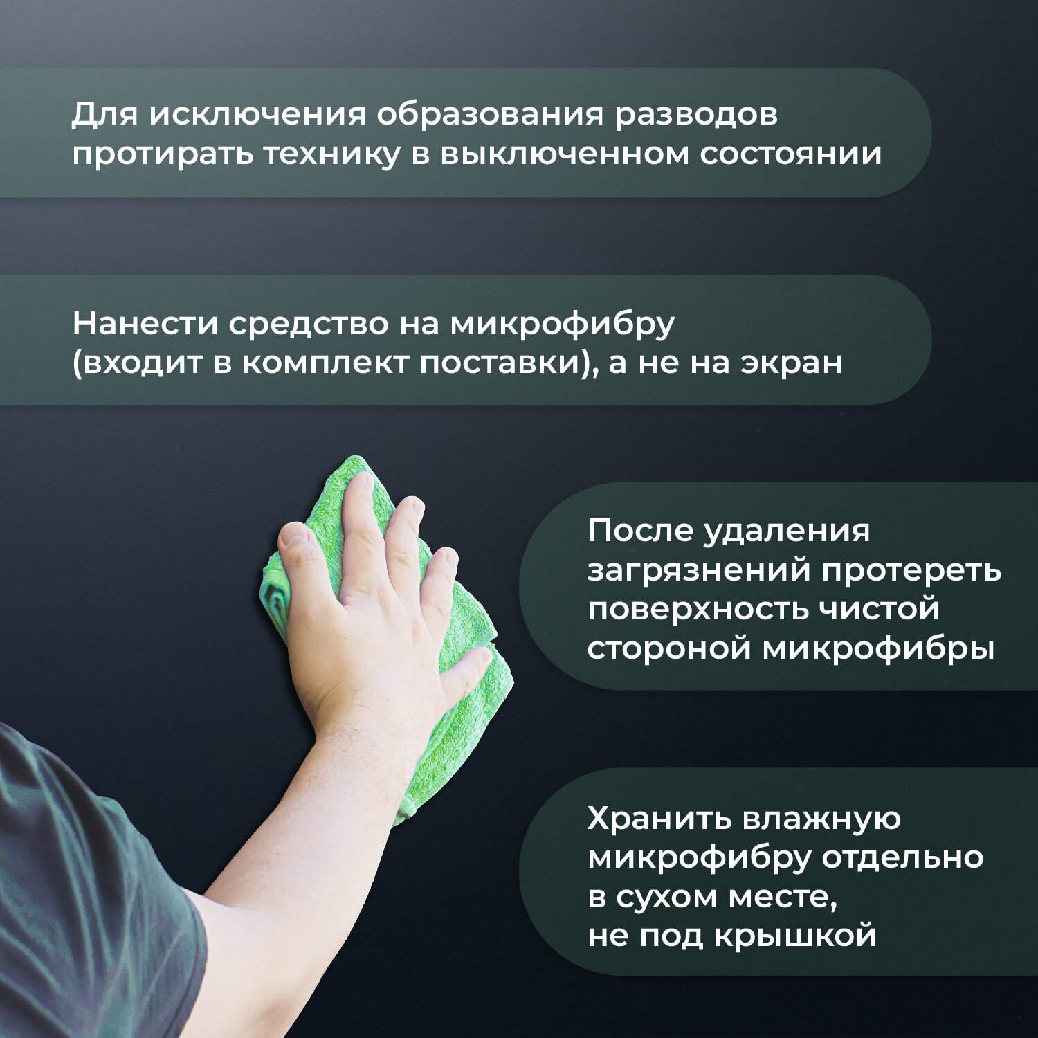 Чистящее средство для экранов любых типов с антибактериальным эффектом + микрофибра 30*30 см, 470 мл интересное:
