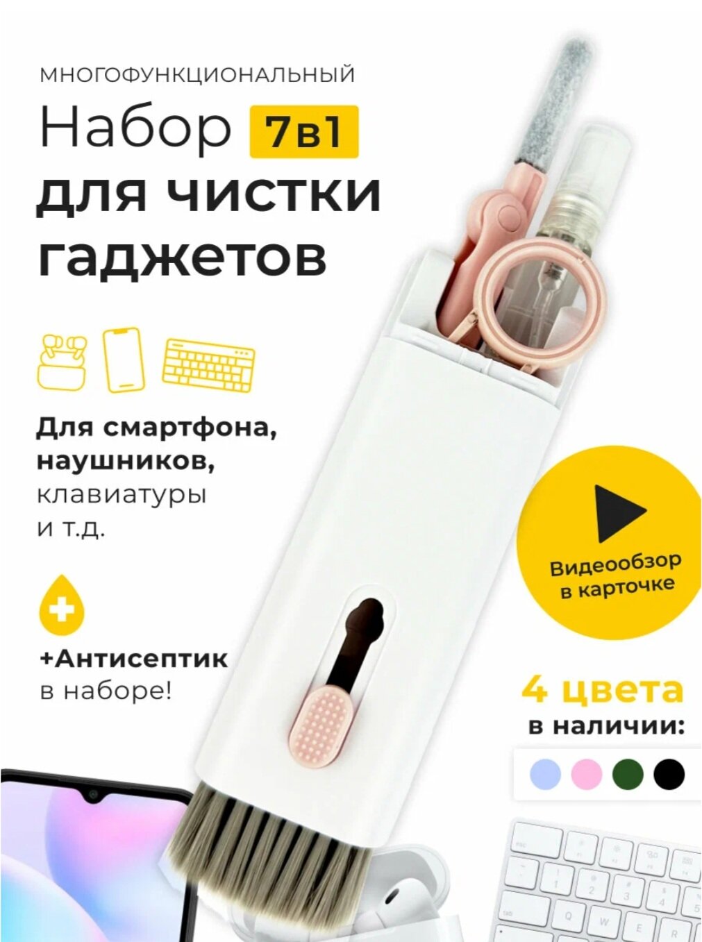 Ниже Вы можете прочитать отзывы на Щетка 7 в 1 для чистки наушников, клавиатуры, экрана телефонов и ноутбуков (Розовая), ознакомится с подробными характеристиками, посмотреть интересные обзоры и фотографии на Щетка 7 в 1 для чистки наушников, клавиатуры, экрана телефонов и ноутбуков (Розовая).