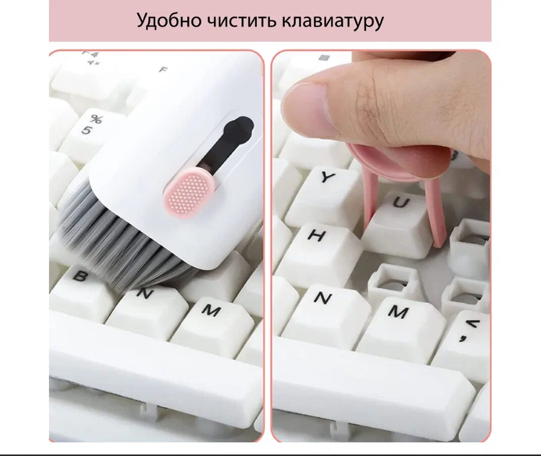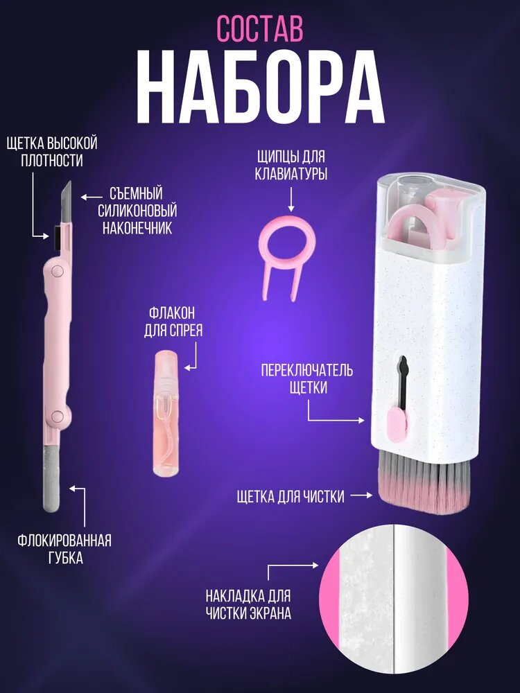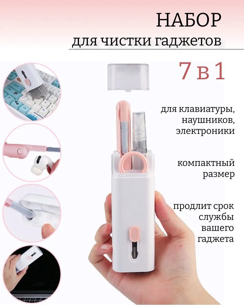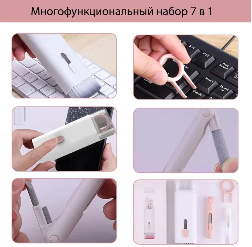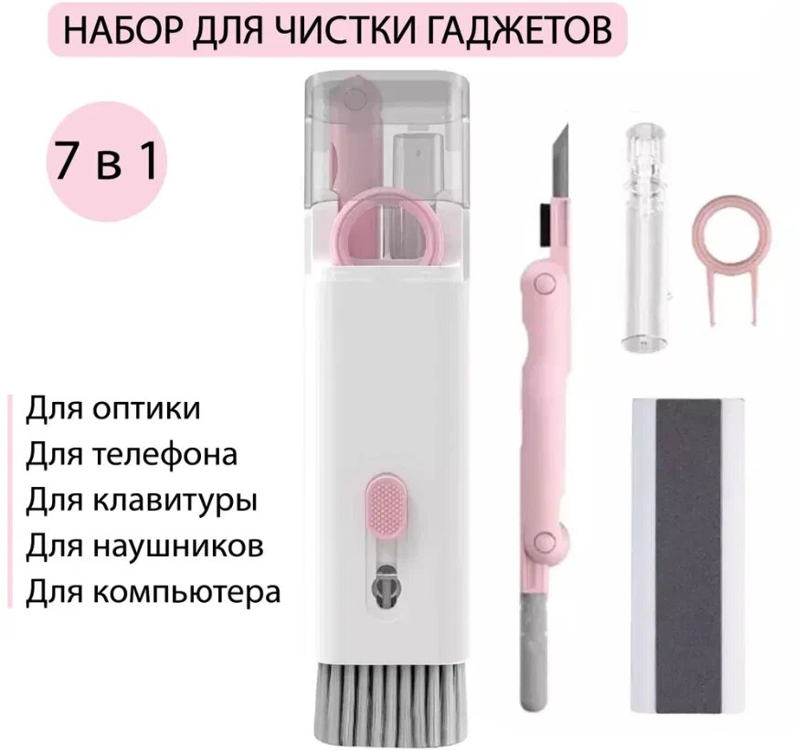 Щетка 7 в 1 для чистки наушников, клавиатуры, экрана телефонов и ноутбуков (Розовая) интересное: