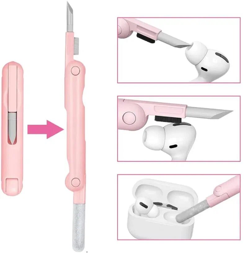 Купить Щетка 7 в 1 для чистки наушников, клавиатуры, экрана телефонов и ноутбуков (Розовая)