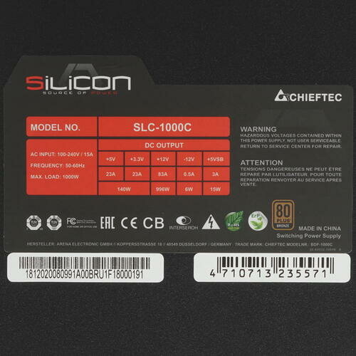 Блок питания Chieftec Silicon SLC-1000C (ATX 2.3, 1000W, 80 PLUS BRONZE, Active PFC, 140mm fan, Full Cable Management) Retail интересное: