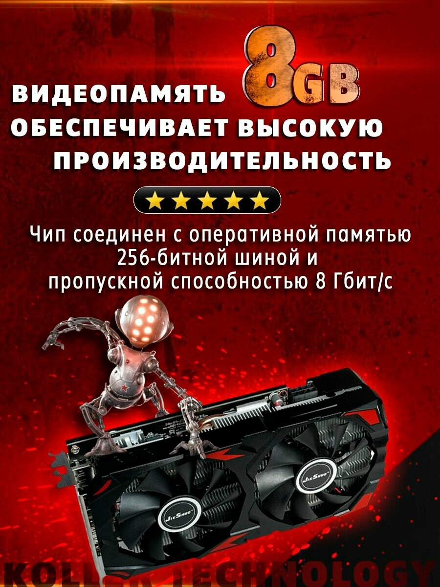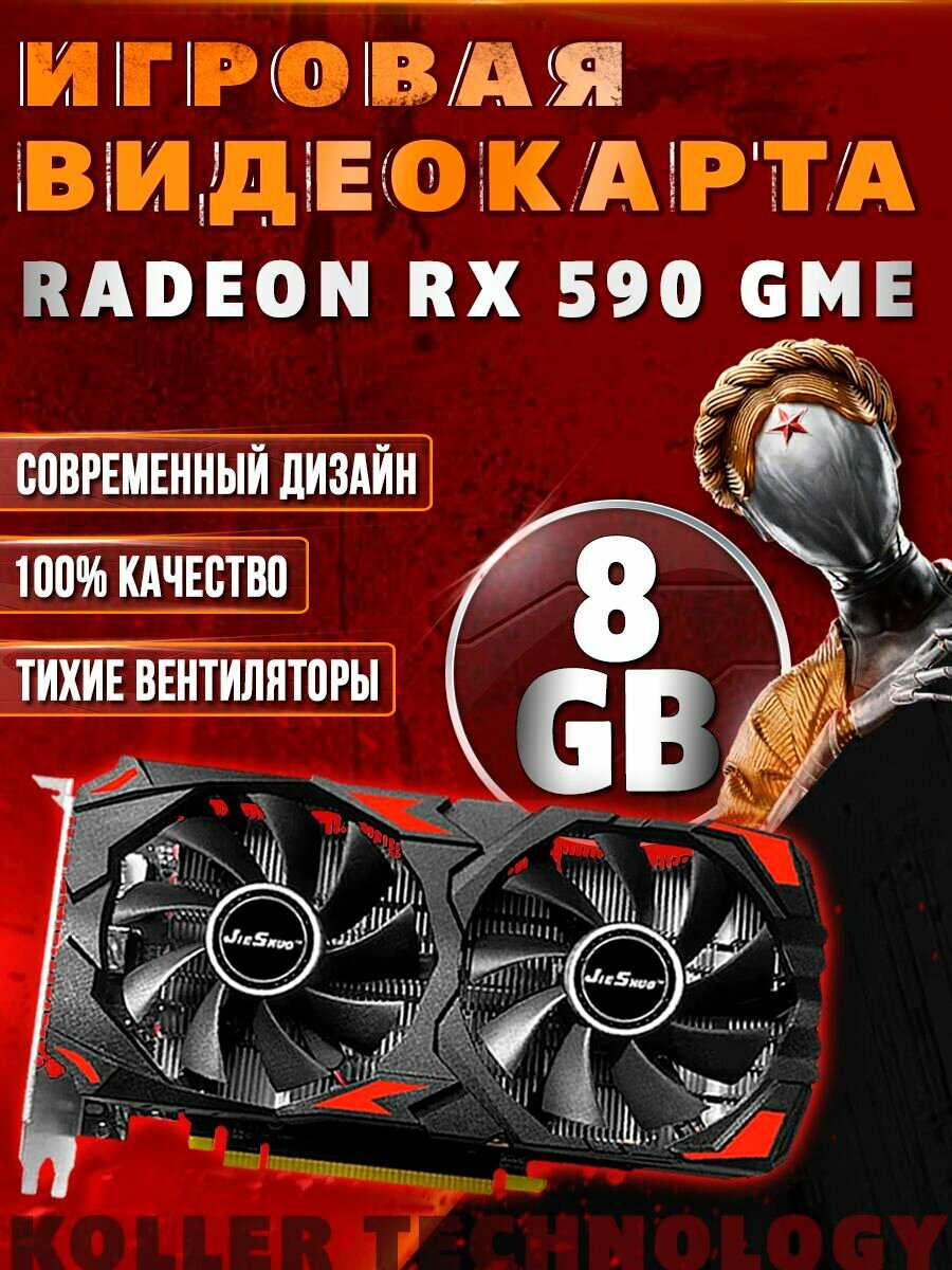 Видеокарта Radeon RX590 игровая для компьютера 8ГБ JieShuo Refurbished