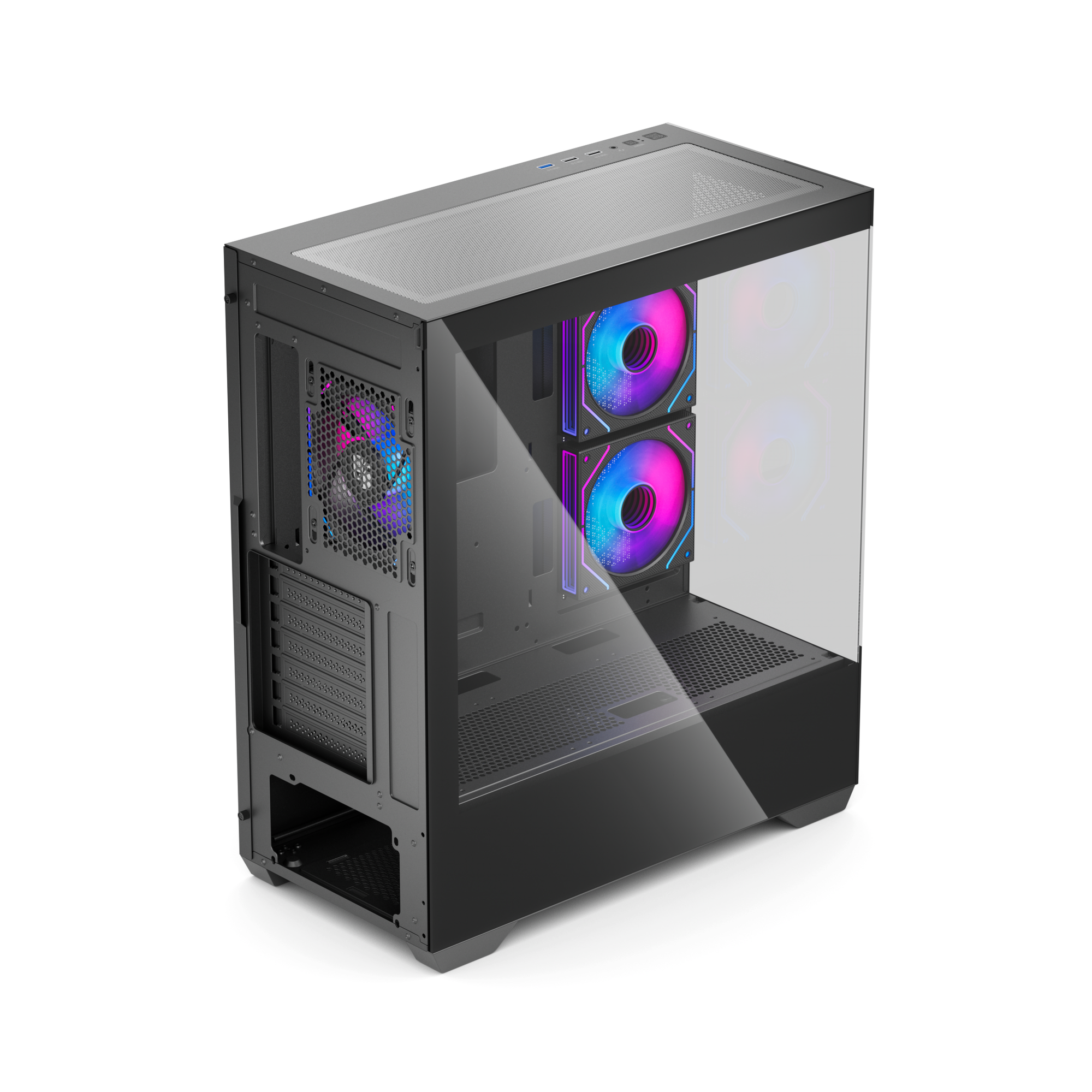 Купить Игровой корпус для компьютера Iron Pride Invader Q6 + 3 ARGB вентилятора + контроллер и пульт ДУ + закаленное стекло, ATX, Micro-ATX, Mini-ITX, Черный