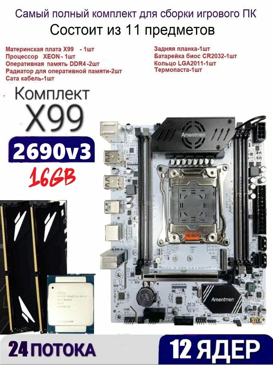 Х99A4,Комплект игровой XEON E5-2680v3+2x8gb DDR4