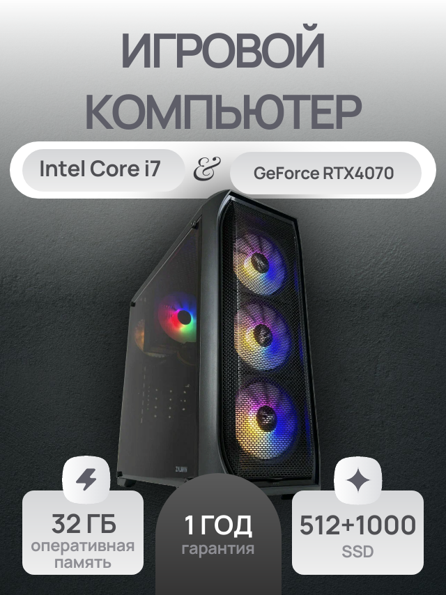Мощный игровой компьютер (системный блок) Intel Core i7 8 ядер/ GeForce RTX 4070/ 32GB DDR4/ SSD 512Gb+ HDD 1 TB/ ZALMAN N5 MF/ 750W/Win10