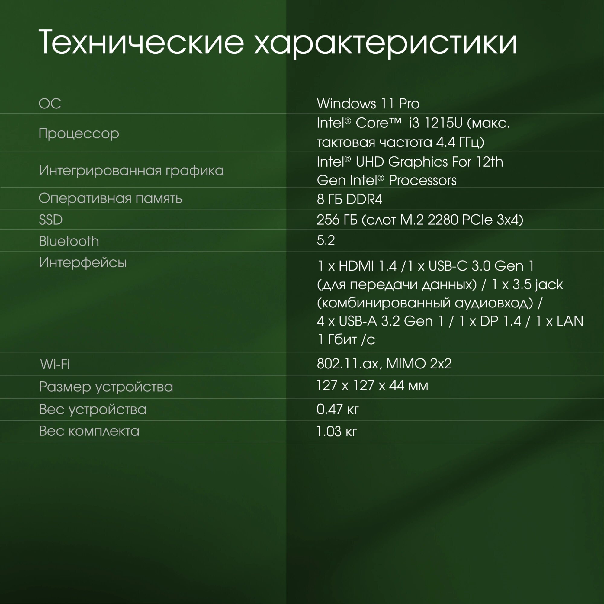 Компьютер Digma Pro Minimax U1 Core i3 1215U 8/256ГБ UHD Graphics Windows 11 Pro