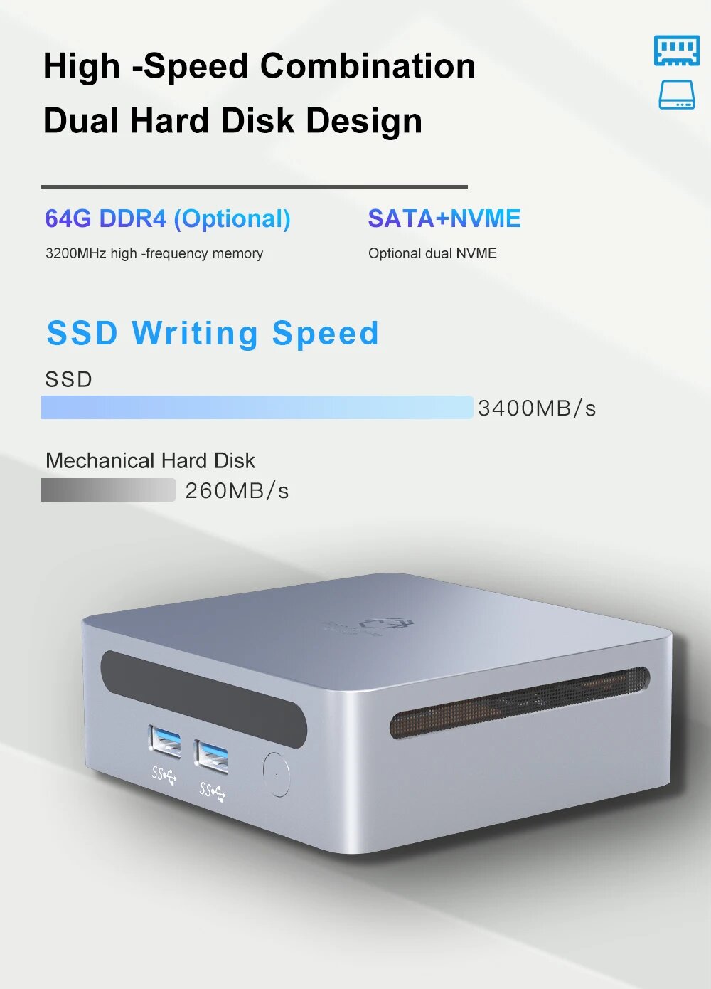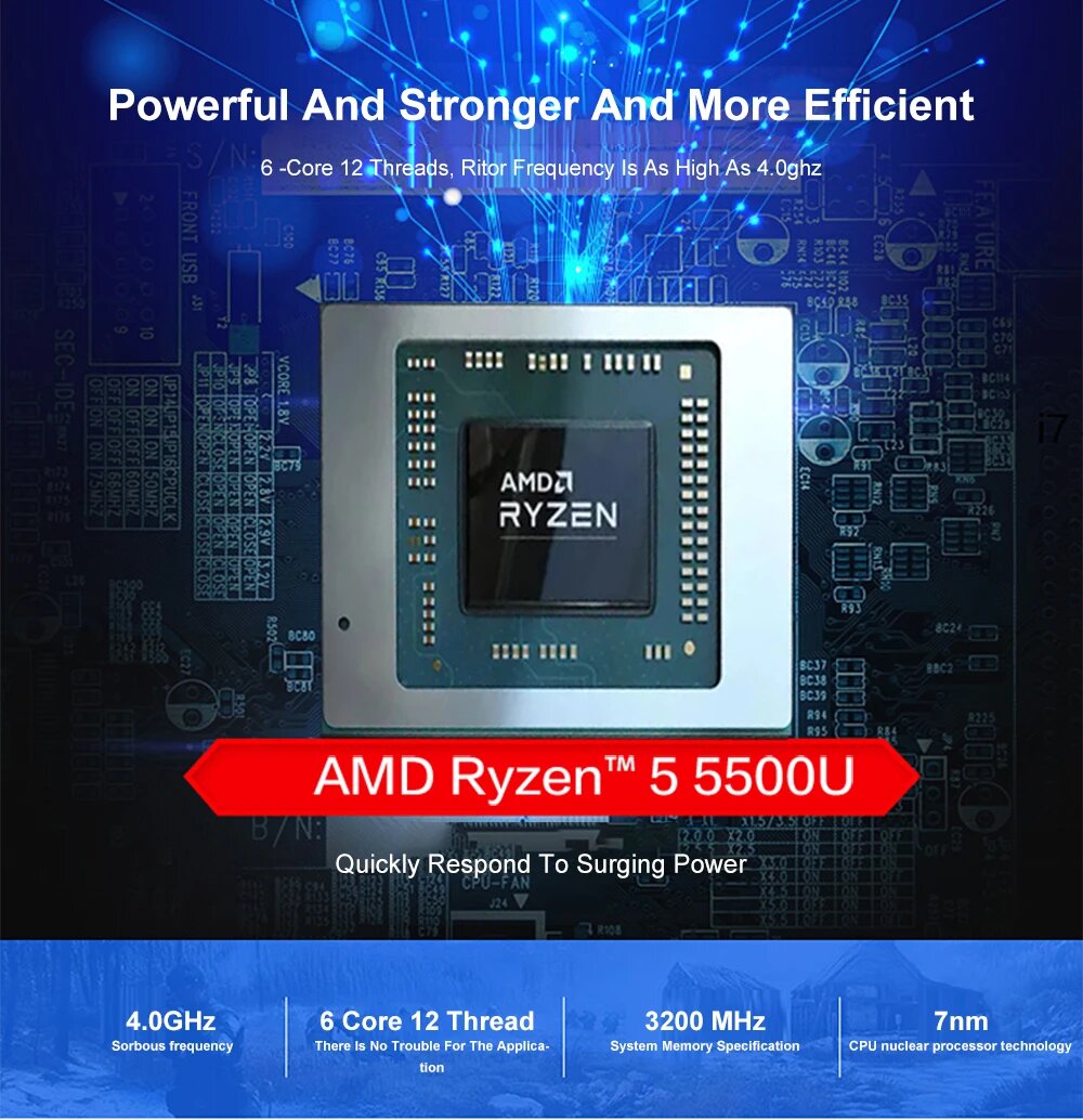Мини-пк (неттоп) для игр/дома/работы GenMachine AMD Ryzen 5 5500U / NO RAM / NO ROM / NO OC
