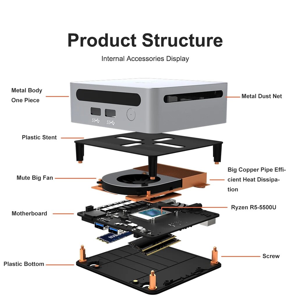 Мини-пк (неттоп) для игр/дома/работы GenMachine AMD Ryzen 5 5500U / NO RAM / NO ROM / NO OC