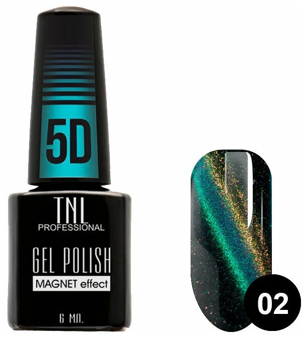 TNL, Гель-лак Кошачий глаз 5D №02, Травянисто-каштановый , 7 мл
