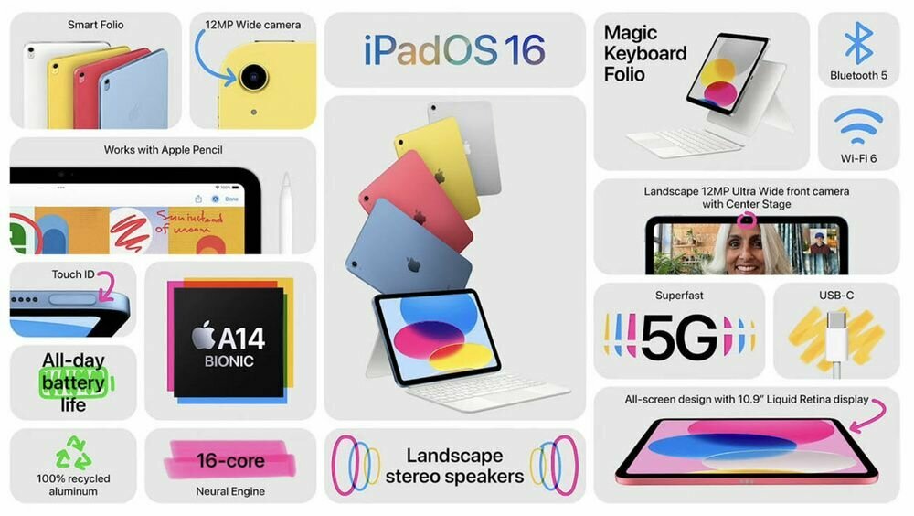 Планшет Apple iPad 10,9" (2022) Wi-Fi, 64GB, голубой интересное: